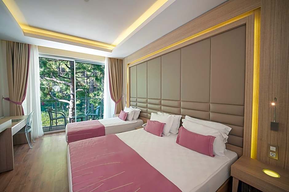 The resort sits on a private Marmaris beach, pairing sun-kissed coastal charm with contemporary style. On-site highlights include a free water park, a free kids’ club, and a private beach area, complemented by indoor and outdoor pools plus a dedicated kids’ pool. Free private parking, complimentary Wi-Fi, room service, and a well-equipped fitness center add practical convenience, while a restaurant, bar, sun deck, terrace, and garden invite guests to linger as the day winds down.