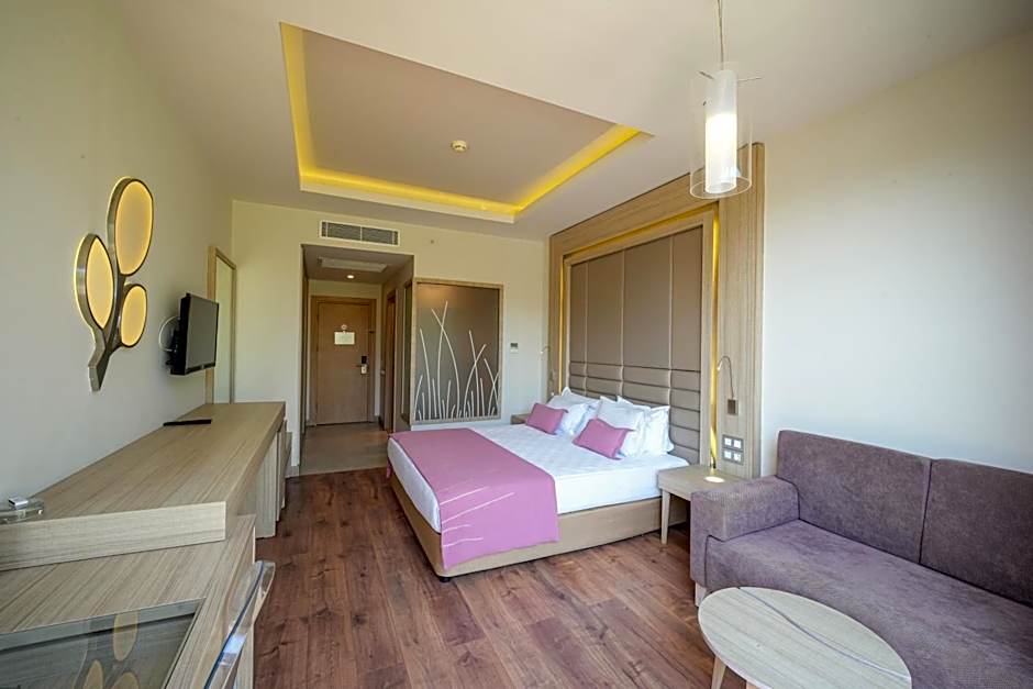 The resort sits on a private Marmaris beach, pairing sun-kissed coastal charm with contemporary style. On-site highlights include a free water park, a free kids’ club, and a private beach area, complemented by indoor and outdoor pools plus a dedicated kids’ pool. Free private parking, complimentary Wi-Fi, room service, and a well-equipped fitness center add practical convenience, while a restaurant, bar, sun deck, terrace, and garden invite guests to linger as the day winds down.
